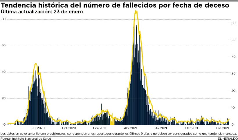 “Desde el 16 de enero hemos reportado un índice de crecimiento de casos activos de – 8 %; aunque la positividad está alta, ese índice demuestra que se está presentando una tendencia a la baja en el número de casos”, sostuvo el funcionario en diálogo con EL HERALDO.