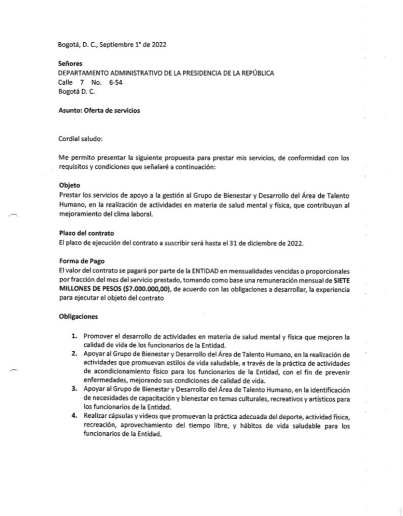 No obstante, ‘Nerú’ presentó una propuesta laboral y el Departamento Administrativo De La Presidencia De La República, en cabeza de Mauricio Lizcano, lo contrató.